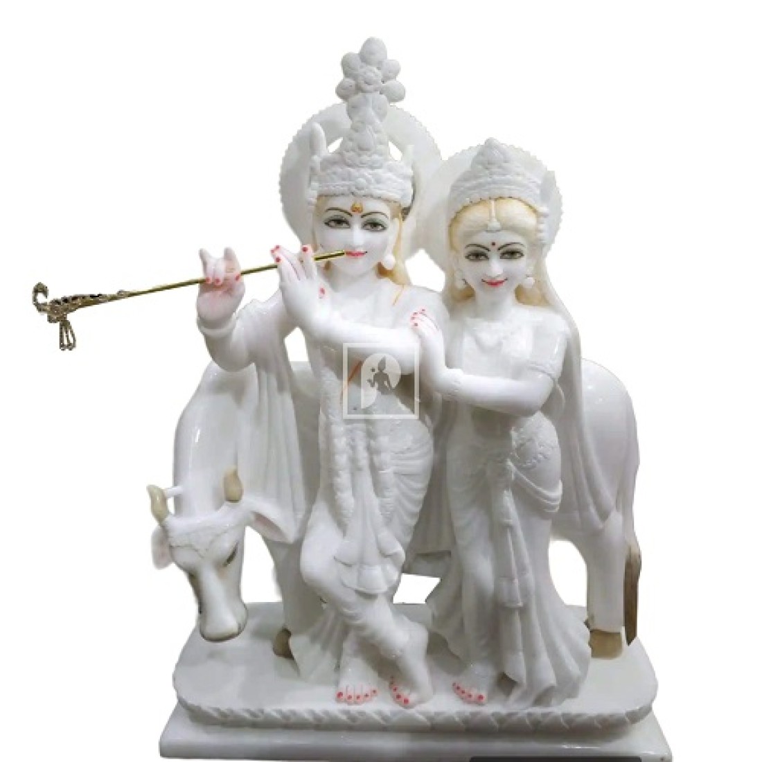 Krishna, often referred to as "Gopala" or the protector of cows, is depicted as a divine cowherd in his early life in Vrindavan. His deep affection for cows and the pastoral environment symbolizes the bond between humanity and nature, emphasizing the importance of compassion and harmonious coexistence with all living beings. The stories of Krishna playing his enchanting flute amidst grazing cows and performing the divine dance known as the "Rasa Lila" with cowherd maidens exemplify the spiritual connection between Krishna and these gentle creatures. This love for cows serves as a profound reminder of the sacredness of all life forms and the nurturing role of the divine, teaching humanity to respect and protect all living beings, especially cows, in Hindu culture. Pandey Marble Moorti is best known for its Krishna God Statue and Krishna Marble Murti.